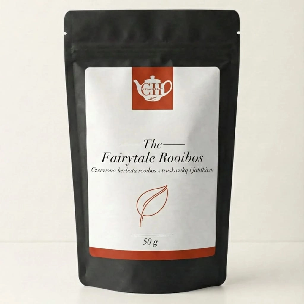 Fairytale Rooibos to aromatyczna kompozycja oparta na naturalnym rooibosie z czerwonokrzewu, pochodzącym z Republiki Południowej Afryki. Połączenie delikatnie miodowej bazy rooibosa z owocową słodyczą jabłka i truskawki tworzy harmonijny napar o przyjemnym, łagodnym charakterze. Całość została wzbogacona płatkami słonecznika, chabra oraz dodatkiem aronii, które podkreślają naturalny profil smakowy i wizualny mieszanki.
