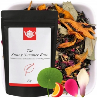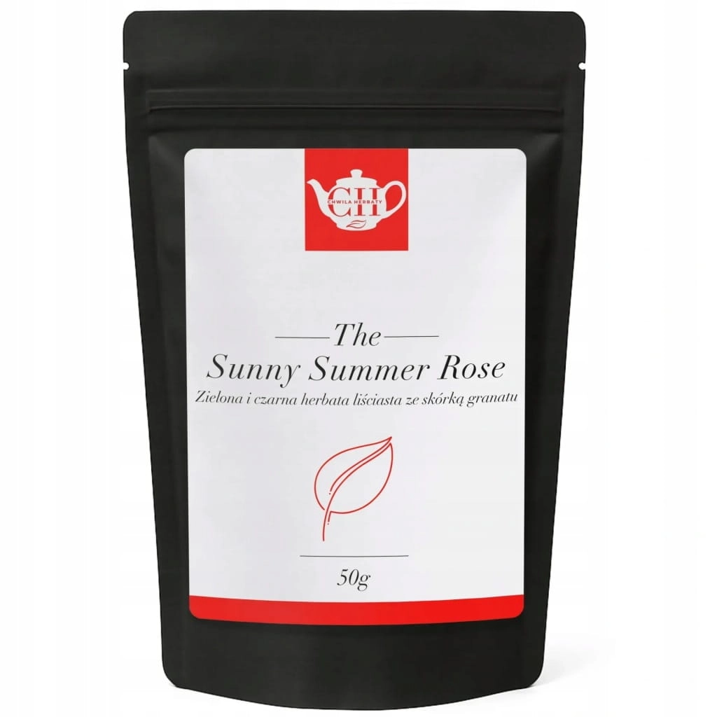 "Słoneczne Lato" to unikalna mieszanka zielonej i czarnej herbaty ze skórką granatu, płatkami róży i egzotycznymi kwiatami. Zachwyca bogactwem aromatu, smaku i estetyki, a jednocześnie oferuje liczne właściwości zdrowotne. To herbata, która łączy elegancję i naturalną świeżość w filiżance - idealna na każdą okazję.