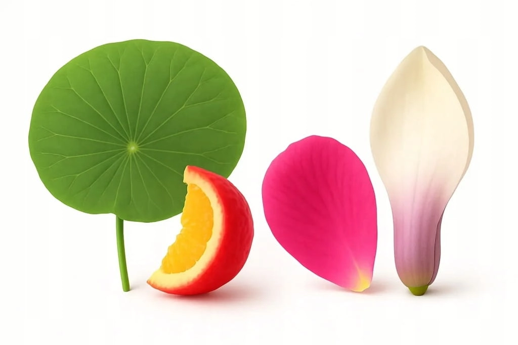 - płatki róży i liść lotosu działają relaksująco i kojąco, redukując stres,