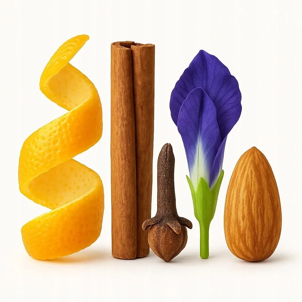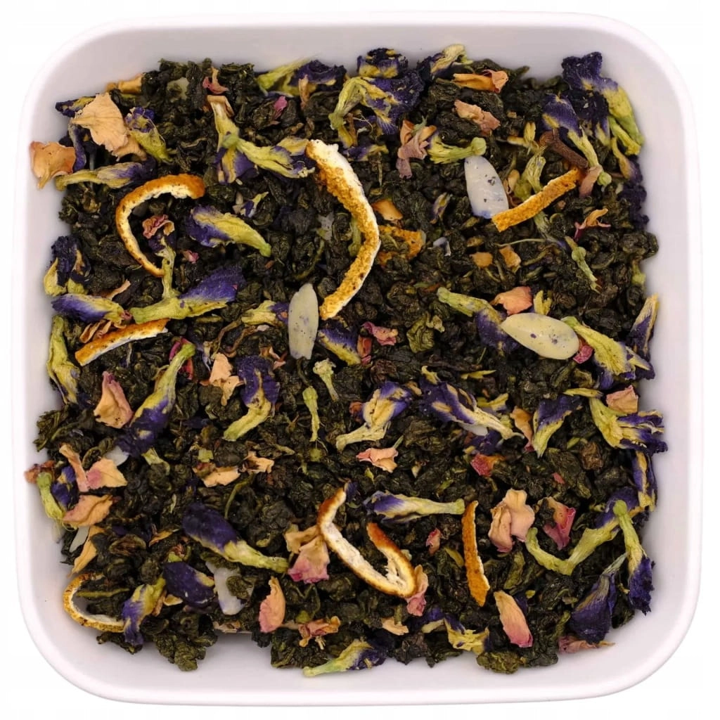 Herbata oolong, pomarańcz skórka, klitoria, migdał, cynamon, aromat naturalny