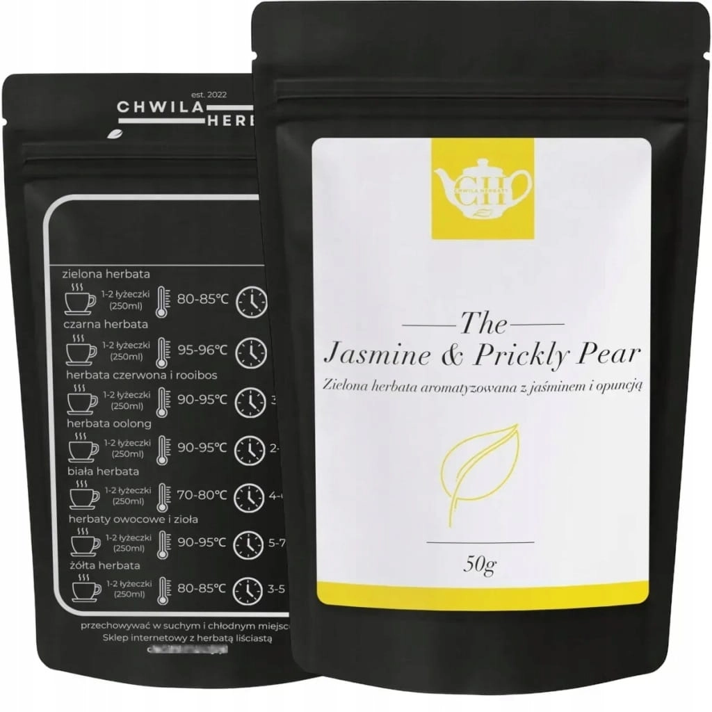 Herbaty ChwilaHerbaty pakowane są w ekologiczne, czarne torebki typu doypack z matowego papieru kraft. Każde opakowanie: