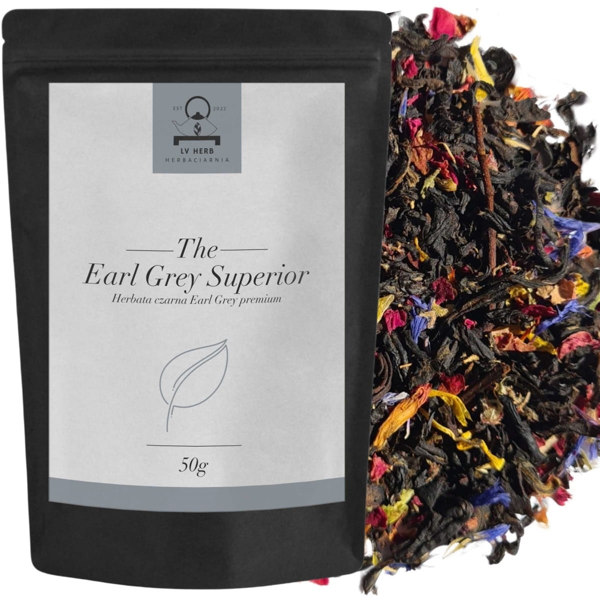 Czarna Herbata Liściasta Premium - Earl Grey Superior: Herbata o wyjątkowym, subtelnie aromatyzowanym smaku. Mieszanka czarnej herbaty z dodatkiem płatków róży, nagietka oraz szafranu chabrowego, wzbogacona naturalnym aromatem. Earl Grey Superior to idealna herbata na eleganckie spotkania oraz chwilę relaksu.
