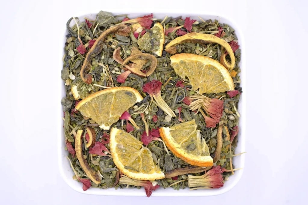 - Rodzaj herbaty: zielona herbata liściasta aromatyzowana