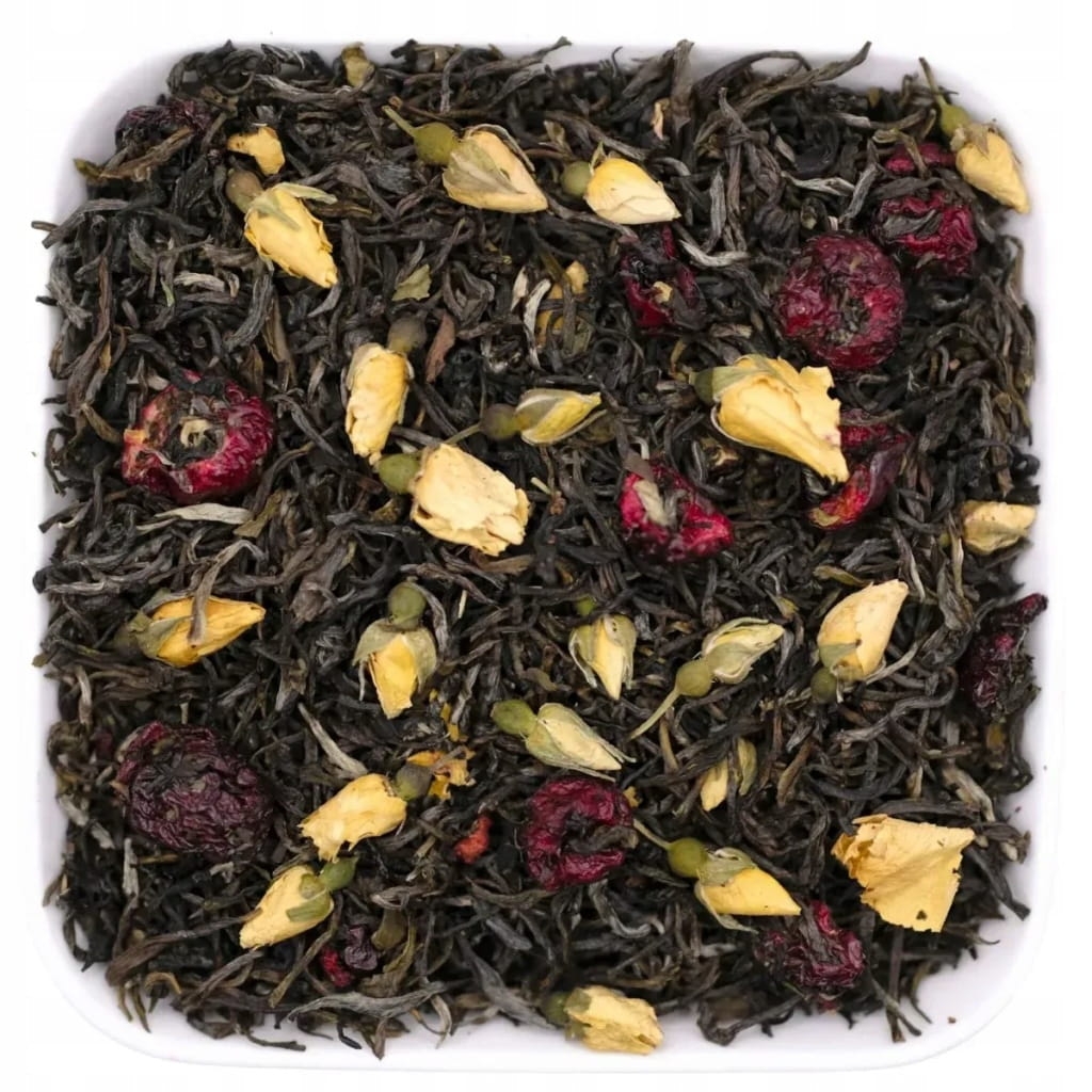 Złota Wiśnia to wyjątkowa żółta herbata liściasta premium, która łączy delikatność chińskiej herbaty żółtej z subtelną słodyczą wiśni oraz eleganckim, kwiatowym akcentem żółtych pąków róży. Całość została wzbogacona aromatem bergamotki, który dodaje naparowi lekko cytrusowej świeżości i wyrafinowanego charakteru.
